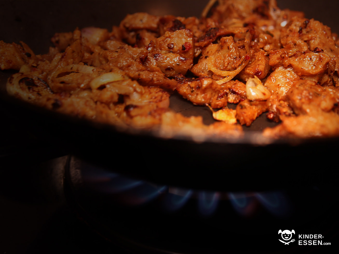Eine große Zwiebel zerkleinern und mit der Gyros-Mischung und etwas Kreuzkümmel in einer Pfanne anbraten, bis alles kross ist.